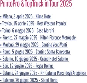 Tra gli eventi organizzati quest’anno da Groupauto, non si può non citare il roadshow PuntoPRO & TopTruck In Tour 2025, giunto alla terza edizione con una copertura territoriale e mediatica di tre mesi. Il furgone brandizzato ha toccato varie località italiane da Nord a Sud da aprile a fine giugno, visitando anche alcune delle officine PuntoPRO presenti sul territorio.