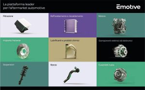 Inoltre, è arricchita dal superbrand di Emotive, primo fornitore di LKQ in Europa, che propone una gamma di marchi che copre diversi segmenti di mercato: OPTIMAL per la meccanica, ERA per l’elettrico e il termico, Starline per la fascia economy, MPM per lubrificanti e fluidi, Platinum per la carrozzeria e MRT VEGE per i motori rigenerati.