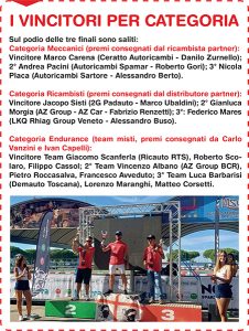 Questa formula ha creato una community di professionisti che condividono la passione per la meccatronica e la voglia di crescere. E l’NGK Go-kart Championship è diventato l’evento di punta del programma: una combinazione unica di sport, business e divertimento. Quest’anno si sono disputate 38 gare di qualificazione a livello regionale (due delle quali riservate ai ricambisti), vissute sempre in un clima di festa, organizzate dai 17 distributori aderenti, che hanno saputo coinvolgere in pista 180 ricambisti e 1.820 autofficine, con una quota del 65% di ricambisti First Class partecipanti. I migliori piloti sono stati invitati alla finale di Jesolo, suddivisa nelle tre categorie Meccanici, Ricambisti ed Endurance, selezionando per la gara ogni vincente a livello locale: un autoriparatore soltanto accompagnato dal ricambista di riferimento e un ricambista soltanto accompagnato dai secondi e terzi classificati regionali. Grande successo ha riscosso la classe Endurance, introdotta l’anno scorso: i team composti da un distributore, un ricambista e un autoriparatore si sono sfidati in una serie di gare con tre cambi di guida obbligatori: una vera prova di squadra, che ha premiato non solo la velocità, ma anche la capacità di pianificazione.